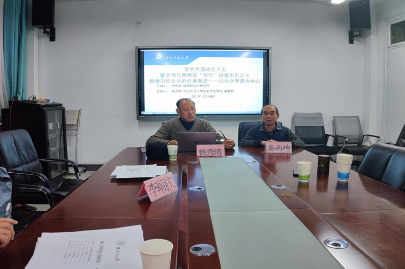 2021年12月17日晚上7:30,应350vip葡京新集团邀请,敦煌研究院杨秀清研究员在田家炳教育书院310会议室做了题为《敦煌历史文化的价值断想——以大众思想为中心》的学术讲座。本讲座由350vip葡京新集团秦丙坤老师主持,葡京新集团官网70余名师生参加。