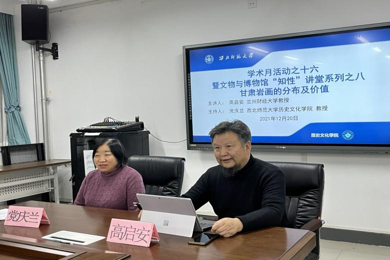 2021年12月20日下午2:30,应350vip葡京新集团邀请,兰州财经大学高启安教授作了题为《甘肃岩画的分布及价值》的学术报告,报告由葡京新集团官网党庆兰老师主持,潘春辉、连菊霞、张荣老师及80余名研究生参加了此次学术报告会。
