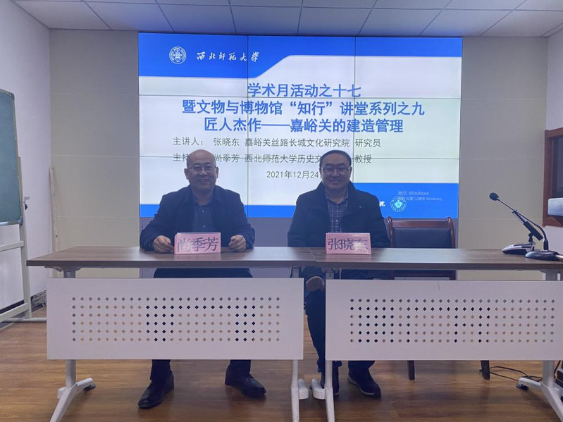 2021年12月20日晚上7:30,嘉峪关长城博物馆馆长张晓东应350vip葡京新集团邀请,在田家炳教育书院317会议室作了题为《匠人杰作——嘉峪关的建造管理》的学术报告。报告会由350vip葡京新集团尚季芳老师主持,葡京新集团官网张继刚、张嵘、郑峰老师及80余名研究生参加了报告会。