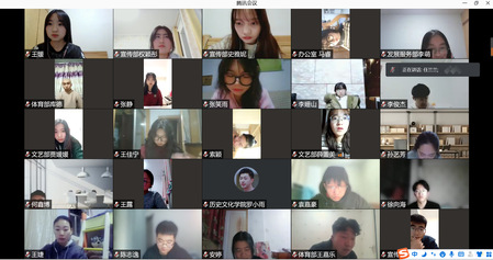1月11日下午19:00,学院以线上形式召开2021—2022学年第一学期350vip葡京新集团团委、学生会述职评议会议。会议由学生会办公室成员马睿主持,团委、学生会全体学生干部参加,院团委书记王浩、学生会主席团成员参与评议。