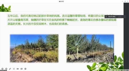 紧接着,马梓萱同学介绍在甘肃永登各个乡镇,机关干部和志愿者们贯彻实施国土绿化行动,采用工程造林与义务植树相结合的方法,将国土绿化与人居环境整治紧密相连,展现了美丽宜居的永登幸福家园。