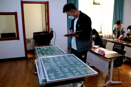 书法载道,翰墨育人。为拓展学生综合素质,丰富校园文化生活,提高师范生的专业技能,充分发挥书写的育人和宣传功能。350vip葡京新集团于2022年5月8日下午在教学7号楼314、317会议室开展主题为“百廿师大墨香校园,一笔好字献礼校庆”三笔字大赛。本次比赛分钢笔字、粉笔字和毛笔字三个组别,邀请到美术学院梁龙、姜北、张伟兵同学担任评委,共计49位同学参赛。