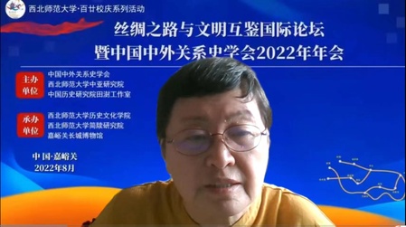 2022年8月20日,“丝绸之路与文明互鉴”国际论坛暨中国中外关系史学会2022年年会在甘肃嘉峪关市召开。会议由中国中外关系史学会、350vip葡京新集团中亚研究院、中国历史研究院田澍工作室主办,350vip葡京新集团、350vip葡京新集团简牍研究院、嘉峪关长城博物馆承办。来自希腊雅典大学、吉尔吉斯国立民族大学、中国社科院古代史研究所、北京大学、暨南大学、厦门大学、南开大学、兰州大学、甘肃省社科院、嘉峪关丝路(长城)研究院等国内外科研院所与高校的80余位专家学者通过线下线上的方式参会。