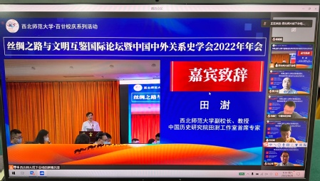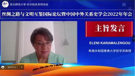 在主旨发言部分,万明研究员(《砥砺前行:纪念中国中外关系史学会成立40年—1981-2021》)、雅典大学海伦教授(《中国和希腊:高等教育领域的教育和文化合作》)、嘉峪关丝路(长城)研究员张晓东研究员(《嘉峪关650年景象变迁》)、西南大学李祥东博士(《再论<蒙古山水图>之命名》)、中国海洋大学曲金良教授(《中国古代环中国海“天下共同体”的中—外制度建构》)、华东师范大学黄纯艳教授(《宋朝文明向东亚诸国的传播》)、350vip葡京新集团张德芳教授(《张骞“凿空”以前的中亚社会—以希腊化时期为重点》)做专题演讲。主旨发言由兰州大学郑炳林教授、350vip葡京新集团何玉红教授主持。