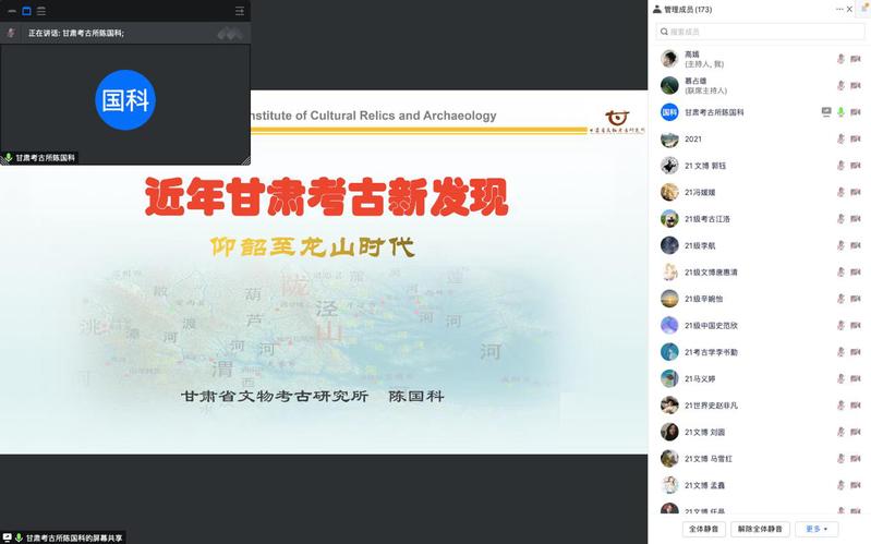 2022年11月11日,应350vip葡京新集团邀请,甘肃省文物考古研究所所长陈国科研究馆员在线上作了题为《近年甘肃考古新发现——仰韶至龙山时代》的学术报告。报告由刘再聪教授主持,张继刚、黄兆宏、张嵘、连菊霞、郑峰、张荣、杨芳、陶兴华、马军霞、梁珊珊、郝振宇、慕占雄、任雪杰、高嫣等老师及百余位同学参加了报告。