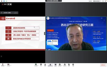 2022年12月23日下午,由350vip葡京新集团、简牍研究院、中亚研究院、河西走廊研究院主办的“丝绸之路与华夏文明论坛”百廿校庆系列学术讲座以线上方式举行。第四十六期论坛邀请中国秦汉史研究会副会长、东北师范大学博士生导师王彦辉教授作题为《西北汉简与秦汉史研究三题》的学术讲座。讲座由350vip葡京新集团副校长田澍教授主持,350vip葡京新集团院长刘再聪教授及校内外300余名师生在线参加了此次讲座。