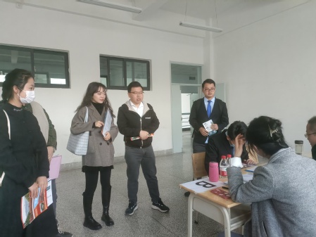 在招聘会现场,2019级学生党员和老师积极沟通交流自己对就业的想法与认识。冯伟栋认为要正确面对社会上的就业竞争压力,客观评价自我,学会主动去适应就业形势。黄吴祥谈到:“要根据自己的专业技能、综合能力和用人单位的要求,确定自己的职业定位。”2020级和2021级同学们也积极参与交流,王蓉说:“要磨炼提升自己的专业技能,为以后就业做好充足的准备”。