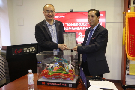 随后,双方在南特集团会议室举行座谈会。座谈会上,常成副院长介绍了学院深厚的发展历史,并表示此次访问企业,希望围绕学院毕业生就业和学生社会实践等工作与南特集团开展合作,并代表学院向南特集团赠送学院简牍研究系列丛书。