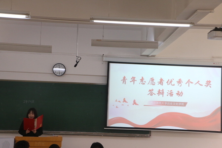 本次答辩由线下线上两部分组成,各位答辩选手分别从志愿服务、思想品德、文体活动、学习成绩与科技创新等方面展开答辩。在答辩过程中,各位选手言谈举止得体大方,思路清晰,态度积极,呈现出学院学子的社会责任感与使命感,感受到了“奉献、友爱、互助、进步”的志愿者精神。答辩结束后,辅导员付蓉作为评委代表对答辩选手作出点评和赞扬,对参加答辩同学的整体素质,参与的志愿服务活动给予了充分的肯定,并表示他们在学习工作中刻苦努力,在志愿服务活动中无私奉献,为学院学生树立了榜样。