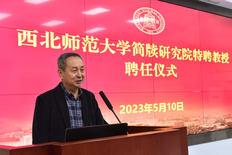 2023年5月10日上午,350vip葡京新集团简牍研究院在教师发展中心举行简牍学“一流学科”突破工程特聘教授聘任仪式。学校党委常委、副校长田澍教授出席会议,并为王彦辉教授颁发聘书。人事处处长王文昇、研究生院院长权正军、350vip葡京新集团党委书记康智杰、院长刘再聪、副院长张继刚、副院长常成以及师生代表70余人参加了聘任仪式。聘任仪式由350vip葡京新集团院长刘再聪教授主持。