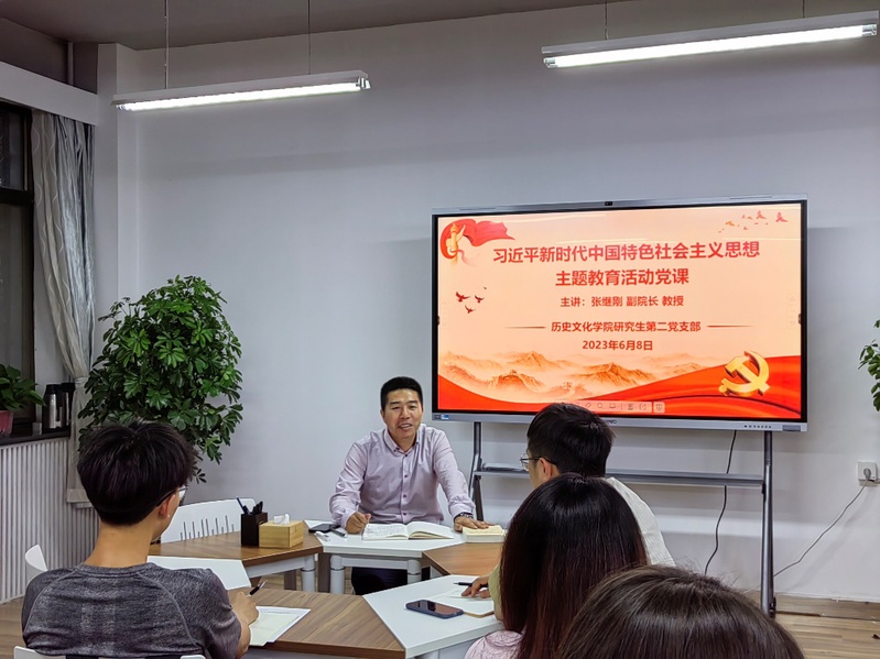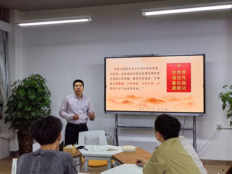 68日,为深入开展学习贯彻习近平新时代中国特色社会主义思想主题教育,350vip葡京新集团张继刚副院长在田家炳教育书院103室向研究生第二党支部全体党员讲授专题党课,研究生第二党支部全体党员、入党积极分子参加学习。