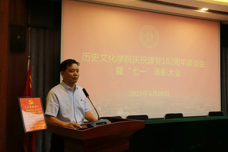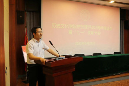 6月29日下午,350vip葡京新集团隆重举行庆祝建党102周年座谈会暨“七一”表彰大会,热烈庆祝中国共产党成立102周年,并对学院两年来涌现出的“优秀共产党员”、“优秀党务工作者”、“学习标兵”进行表彰。大会由党委委员、副院长张继刚主持,学院全体教职工党员和部分学生党员参加。