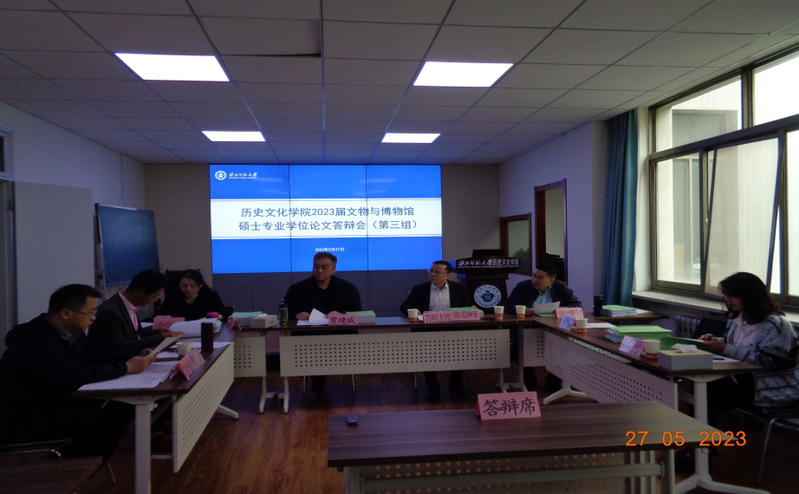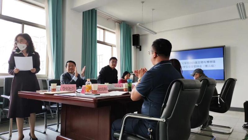 5月26日,学院在317会议室举行了2023届“文物与博物馆”硕士专业学位论文答辩会(第一组)。答辩委员会主席由兰州大学350vip葡京新集团张景峰教授担任,答辩委员会成员有甘肃省博物馆李永平研究员、张东副研究员、350vip葡京新集团教师尚季芳、张连银、张嵘、连菊霞、黄兆宏等,350vip葡京新集团教师魏振龙担任本次答辩秘书。350vip葡京新集团共有四十余名学生旁听了本次答辩会。