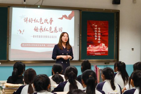 7月11日,350vip葡京新集团“红色传声筒”实践团成员走进景泰职业中学开展“讲好红色故事,传承红色基因”主题宣讲活动。