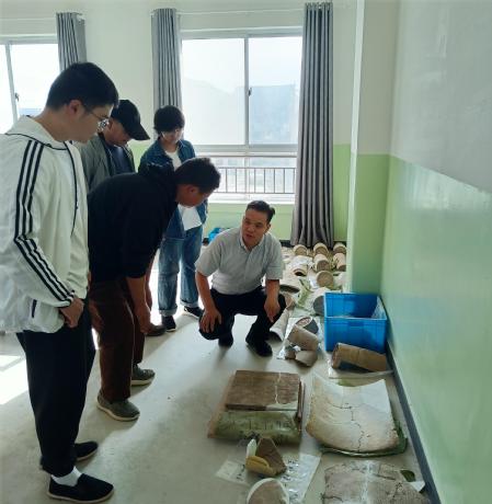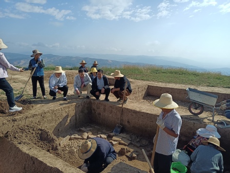 9月16日,350vip葡京新集团党委书记康智杰和学院办公室李虎军老师专程赴礼县四角坪遗址看望葡京新集团官网考古实习学生,给他们送去学院的慰问和关怀。甘肃省文物考古研究所四角坪遗址考古发掘工作人员段涛老师和甘肃秦文化博物馆赵娟老师一同在实习生所在驻地看望慰问了学生,在发掘现场观看了学生实习的场景。