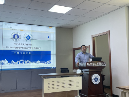 2023年9月12日上午,350vip葡京新集团“2020级丝绸之路文明基地班”25名同学在田家炳教育书院317会议室举行中期考核汇报会。350vip葡京新集团党委副书记王玉丰、副院长张连银,李晓英、张荣、王新春、杨尚荣老师参加中期汇报会,本次汇报会由张连银教授主持,张倩云老师担任秘书。
