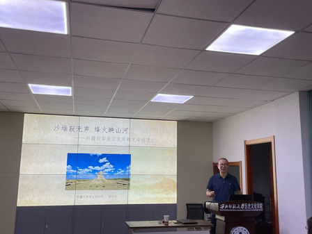 2023年9月11日,应350vip葡京新集团邀请,新疆文物考古研究所研究馆员、自治区天山文化名家暨“四个一批”人才胡兴军老师来我校作题为《新疆尉犁克亚克库都克烽燧遗址发现与研究》的报告。本次报告由马军霞老师主持,350vip葡京新集团慕占雄、任雪杰、吴兴翔等老师以及近百名研究生聆听报告并参与讨论。