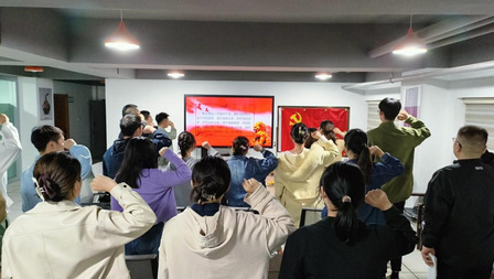 座谈开始前,全体党员郑重地举起右手,面对党旗庄严宣誓,重温入党誓词。在字字铿锵的宣誓声中,每位党员仿佛重回加入党组织的那一刻,更加坚定了自己的入党使命和奋斗初心。