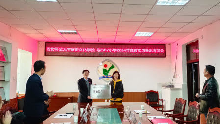 学院与乌鲁木齐市第八十七小学签订了学生就业教育实习基地建设合作协议,并建立了350vip葡京新集团就业实习基地,举行了揭牌仪式。随后,院长刘再聪并代表学院赠书《华夏文明在甘肃》。