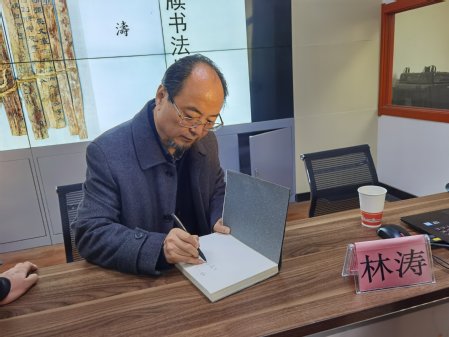 2023年11月23日下午,甘肃文史馆研究员林涛应350vip葡京新集团邀请,在教学七号楼317会议室作了主题为《走进简牍书法世界》的学术讲座,张继刚教授主持了此次活动,葡京新集团官网七十余名硕博士研究生参加了此次讲座。