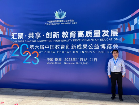 11月18日上午,第六届中国教育创新成果公益博览会在广东珠海国际会展中心开幕。本届教博会以“汇聚·共享·创新——教育高质量发展”为主题,聚焦“教育优质均衡、教育治理现代化、新课程改革、新时代教师队伍建设、教育数字化、教育质量评价”六大领域采取展览展示和会议论坛相结合的方式,开展100余场主题论坛和品牌活动,开设1100余场成果工作坊,布设5大展馆集中展示2200余项国内外优秀教育创新成果设SERVE奖成果、科学教育、家庭教育、项目学习、未来设计、未来媒体与数字素养等特色主题展区。副院长张连银教授代表学院参加本次博览会。