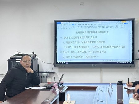 2023年12月18日,应350vip葡京新集团邀请,兰州大学350vip葡京新集团敏敬教授在田家炳教育书院314会议室作了题为《土耳其民族国家构建中的种族因素》的报告。报告由吕海军副教授主持,350vip葡京新集团50余名研究生聆听报告并参与了讨论。
