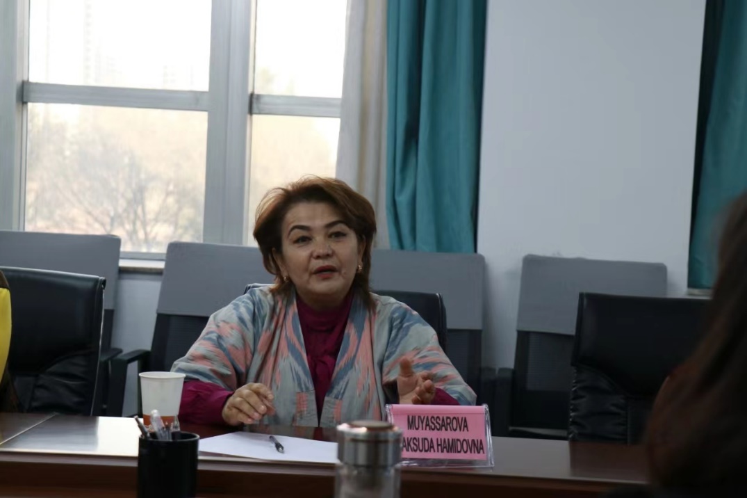 2023年12月12日下午,乌兹别克斯坦民族关系研究中心达乌拉托娃(Davlatova Saodat Tilovberdievna) 主任和乌兹别克斯坦塔什干地区国立中学外语组穆娅萨柔娃(Muyassarova Maksuda Hamidovna)主任来学院314会议室举行座谈。座谈会由刘再聪教授主持,张连银、杨尚荣、宋海英和张丽娟等老师参加了座谈。