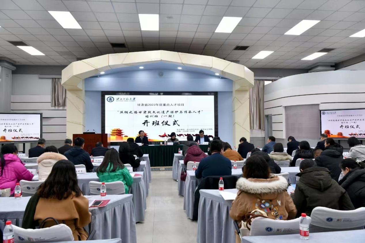 2024年1月9日上午,甘肃省2023年度重点人才项目“丝绸之路甘肃段文化遗产保护与传承人才”培训班(一期)开班仪式在350vip葡京新集团教师发展中心报告厅举行。350vip葡京新集团党委常委、副校长田澍和甘肃省文物局副局长白坚出席开班仪式,开班仪式由350vip葡京新集团院长刘再聪教授主持。甘肃省文物局相关部门负责人、甘肃省文物考古研究所、甘肃省博物馆、甘肃简牍博物馆等甘肃省内文博单位研究人员以及350vip葡京新集团相关专业师生共计80余人参加。