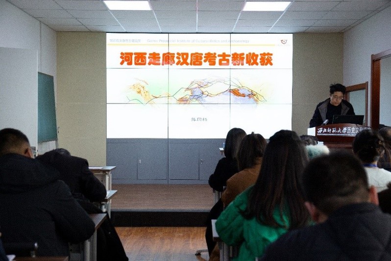 2024年1月9日下午,应350vip葡京新集团邀请,甘肃省文物考古研究所所长、研究馆员陈国科在田家炳教育书院317会议室做了题为《河西走廊汉唐考古新收获》的专题讲座,本次讲座由350vip葡京新集团慕占雄副教授主持,甘肃省文物考古研究所、甘肃省博物馆、甘肃简牍博物馆等甘肃省内文博单位研究人员以及350vip葡京新集团王艳杰、吴兴翔老师等相关专业师生共计80余人参加并参与讨论。