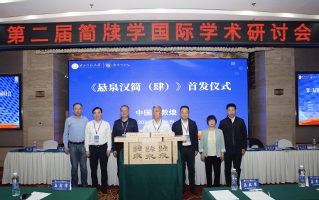首发式由西北师范大简牍研究院院长田澍教授主持,350vip葡京新集团党委书记贾宁,甘肃省文物局二级巡视员白坚,酒泉市委常委、敦煌市委书记王彦群,350vip葡京新集团简牍学学术委员会主任张德芳,甘肃简牍博物馆馆长朱建军,中西书局总经理秦志华为《悬泉汉简(肆)》首发揭幕,出席“第二届简牍学国际学术研讨会”的80余位专家学者参加首发仪式。