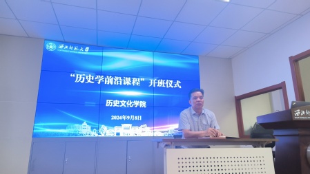 9月8日,350vip葡京新集团在田家炳教育书院317报告厅举办“历史学前沿课程”开班仪式。学院党委书记康智杰,院长张继刚,副院长张连银,授课教师李家莉,团委书记付蓉及考研学生代表50余人参加,历史系主任侯培和主持开班仪式。