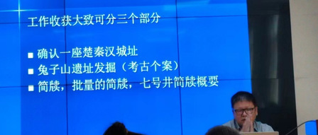 最后,张老师以兔子山遗址7号井出土简牍为中心,就汉初吴姓长沙国辖下益阳县所属乡、里的行政运作,以及官吏、民众日常生活状况作了细致分析。张老师进一步指出,益阳兔子山遗址7号井简牍的内容十分重要,其中秦二世元年诏书和张楚之岁简牍的发现,为研究秦末汉初二十年风云激荡的历史提供了坚实的资料基础,同时为湖南地区历史地理、社会生活方面的研究提供了丰富的史料。