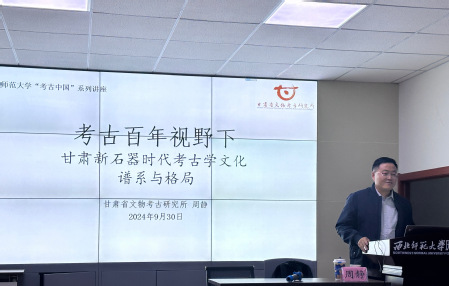 2024年9月30日,应350vip葡京新集团邀请,甘肃省文物考古研究所副研究员周静在田家炳教育书院317会议室作题为“考古百年视角下甘肃新石器时代考古文化谱系和格局”的学术报告,本次报告为“考古中国”系列讲座第二讲。报告由慕占雄副教授主持,学院陶兴华、马军霞等老师及80余名研究生聆听了本次报告并参与讨论。