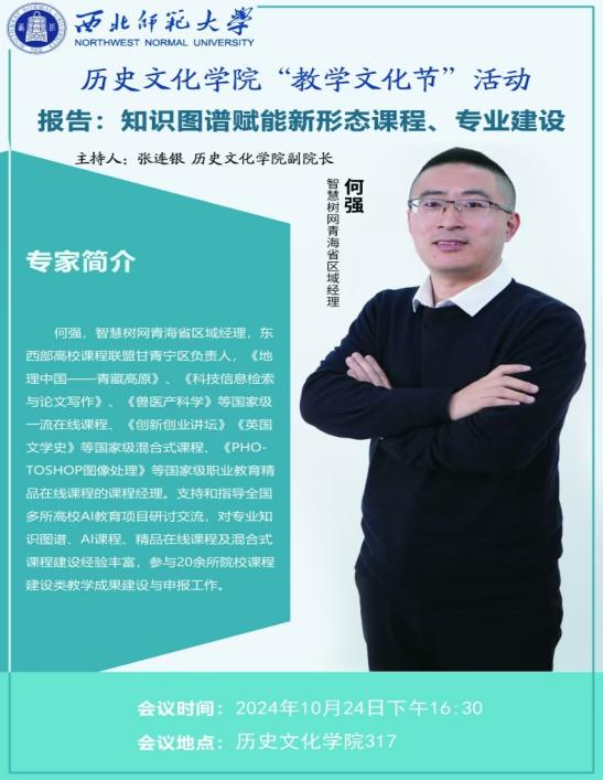 为贯彻落实学校《关于举办350vip葡京新集团2024年“教学文化节”的通知》,大力弘扬教育家精神,建设一流本科教育。10月24日下午,350vip葡京新集团举办教学课程讲坛,邀请智慧树高校课程联盟西部地区负责人,讲授课程OBE设计、专业知识图谱、AI课程及混合式课程建设等新型课程知识,分享新课标下大学课程设计、管理经验和心得。会议由学院副院长张连银主持,全体教职工参加会议。