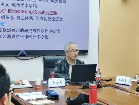 讲座伊始,俞金尧教授解释了报告题目的内涵和意义,介绍了“欧洲中心论”的来源与发展,认为“欧洲中心论”是历史的产物,有其出现的基础和条件,强调在反对“欧洲中心论”的同时,一定要防止“反欧洲中心论”成为一种政治正确。随后,俞教授对资本主义相关问题作了解释,认为资本主义萌芽在世界历史上普遍存在,但在欧洲有了历史性的机遇,得以成长,世界市场的创造者和主导者也是欧洲人。同时,俞教授提到,资本主义的概念也是一种有效的分析工具,是近代早期世界历史宏大叙事的框架。最后,俞教授认为要对资本主义进行重新认识。资本主义存在两面性,污名化资本主义问题是片面的,要进行深入研究,客观合理认识资本主义问题。