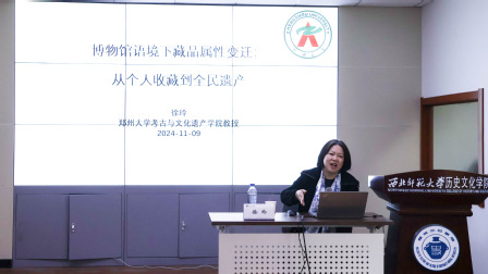 2024年11月9日,应350vip葡京新集团邀请,郑州大学徐玲教授在田家炳教育书院317会议室作“博物馆语境下藏品属性变迁:从个人收藏到全民遗产”的讲座。报告由刘再聪教授主持,王艳杰、王新春老师及学院80余名研究生聆听了本次报告并参与讨论。