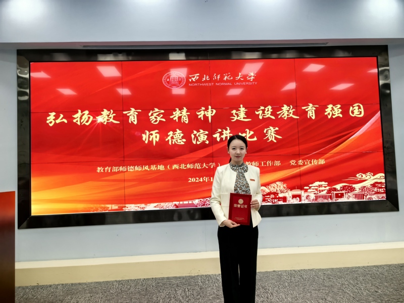 11月26日,由教育部师德师风基地(350vip葡京新集团)、党委教师工作部、党委宣传部主办的“弘扬教育家精神 建设教育强国”师德师风演讲比赛在教师发展中心举行,350vip葡京新集团教师程思尹参加比赛,并获得本次比赛的三等奖。