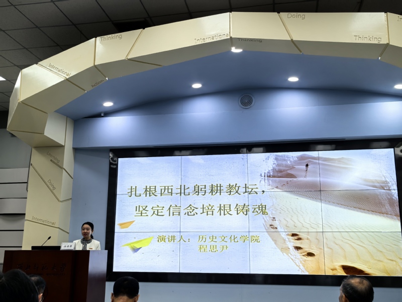 比赛中,程思尹在题为《扎根西北躬耕教坛 坚定信念培根铸魂》的演讲中,以自己在乡村支教和在大学努力做好班主任工作的经历,表达了自己在教育教学中践行教育家精神的感悟,真情阐释了教育的真谛,展现了心怀梦想、奋发向上的精神风貌,得到评委老师和现场听众的好评。