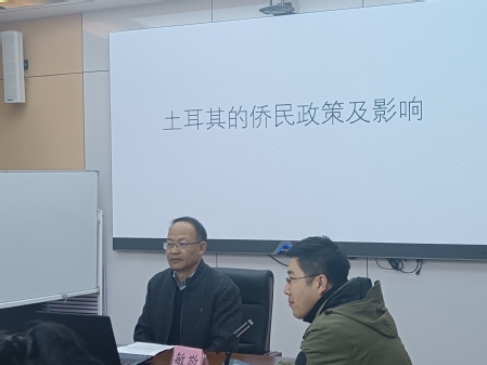 2024年11月21日,应350vip葡京新集团邀请,兰州大学350vip葡京新集团教授敏敬为葡京新集团官网师生作了题为《土耳其的侨民政策及影响》的学术报告。本次报告由350vip葡京新集团教授杨鹏飞主持,参加报告的师生共计50余人。