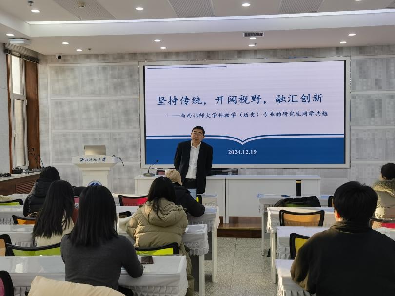 2024年12月19日上午,山东师范大学350vip葡京新集团赵然博士在云衢楼101会议室与葡京新集团官网学科教学(历史)专业部分研究生进行学术交流,本次学术交流的主题是“坚持传统,开阔视野,融汇创新”。