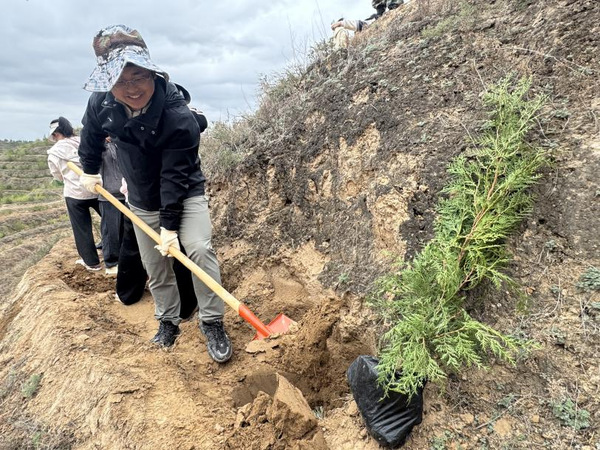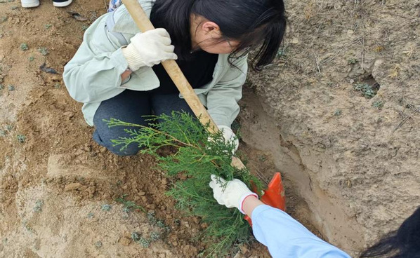 植树现场,大家热情高涨、干劲十足,充分发挥不怕苦、不怕累精神,积极投身到植树活动中,手持铁锹,搬运树苗、栽种树苗、培土围堰。通过大家的团结协作,一株株新栽种的树苗迎风而立、绽放生机,形成春天里一道亮丽的风景线。师生们齐心协力,不仅为北山的绿化建设贡献了一份力量,更在他们心中种下了“绿水青山 守护有我”的种子。