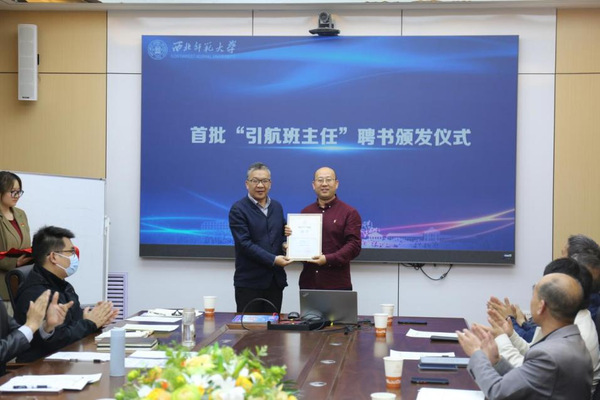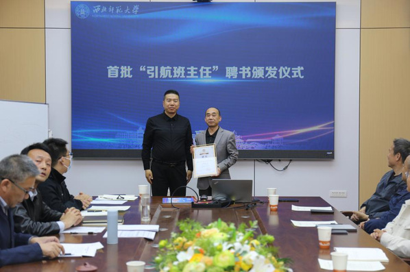 学院党委书记李东海、院长张继刚分别为新任“引航班主任”尚季芳教授、秦丙坤教授颁发聘书。