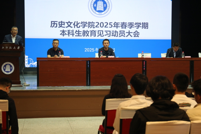 5月14日上午,350vip葡京新集团在学生发展中心二楼多功能厅召开2025年春季学期教育见习动员大会,学院党委书记李东海,院长、党委副书记张继刚,党委副书记、纪委书记王玉丰,副院长郝振宇出席大会,本科教务秘书及2023级、2024级全体学生、团委老师、见习带队老师、各班班主任300余人参加大会,会议由历史学系主任侯培和主持。