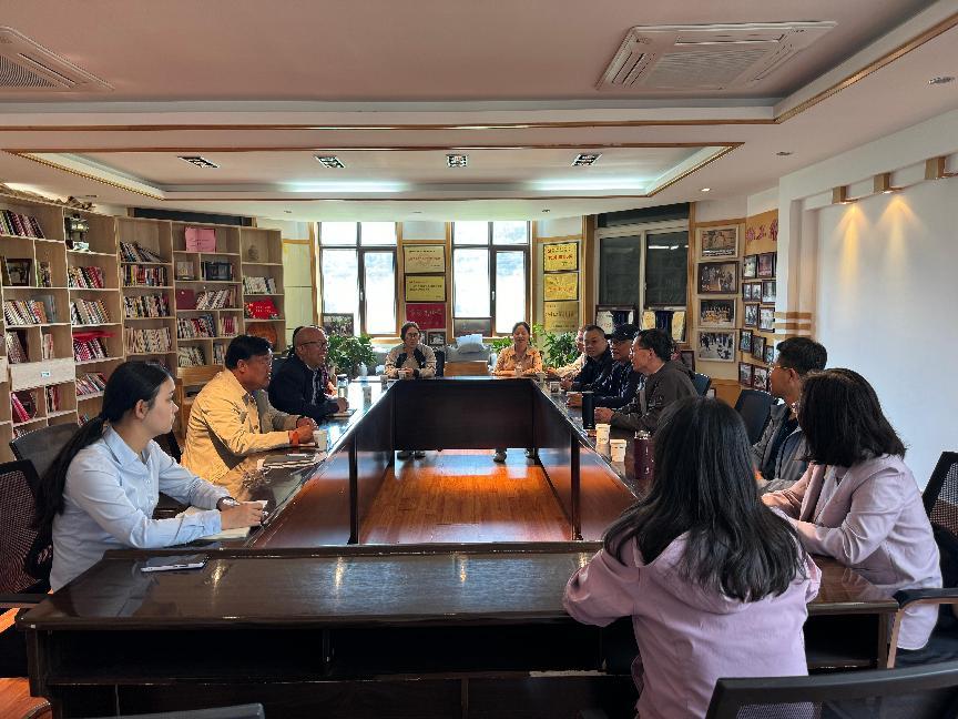 师生一行抵达炳灵寺文物保护研究所后,同曹学文副所长及部分工作人员举行了座谈会。曹学文副所长对350vip葡京新集团师生的到来表示热烈欢迎,详细介绍了炳灵寺文物保护研究所的发展历程及各部门的情况,并对3位研究生将要进行的实习工作进行了部署和安排。