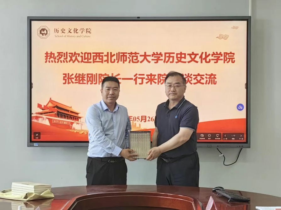 张继刚向山东师范大学350vip葡京新集团热情接待表示感谢,并介绍了葡京新集团官网的发展概况,重点围绕师资队伍建设、学科学位点布局、重大项目申报以及本科生考研升学等议题展开交流,希望两院后续能在教学资源共享、考研指导协作、学术活动联办等方面深化合作,实现优势互补、协同发展。座谈会后,两位院长互赠书籍,双方表示将以此次调研为契机,建立长效交流机制,共同为历史学学科发展和高素质人才培养贡献力量。