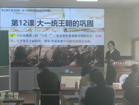 比赛中,同学们以扎实的专业素养和创新的教学理念,在规定时间内呈现了精彩纷呈的教学展示。参赛选手紧扣历史学科五大核心素养,巧妙设计教学环节,将史料实证、时空观念、历史解释、家国情怀等融入课堂,展现了深厚的学术功底与卓越的教学能力。他们以生动的语言、严谨的逻辑和多元化的教学方法,为现场评委及观众呈现了高质量的教学片段,充分彰显了新时代历史教育人才的培养成果。