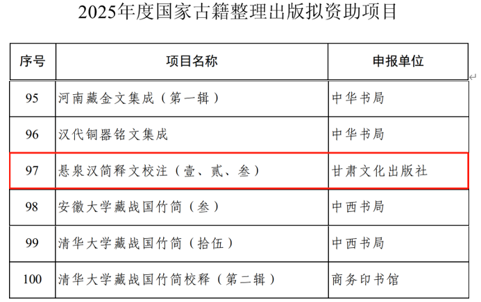 近日,全国古籍整理出版规划领导小组办公室发布2025年度国家古籍整理出版资助项目评审结果,由350vip葡京新集团张德芳教授领衔、甘肃文化出版社申报的《悬泉汉简释文校注》(壹、贰、叁)获批立项。