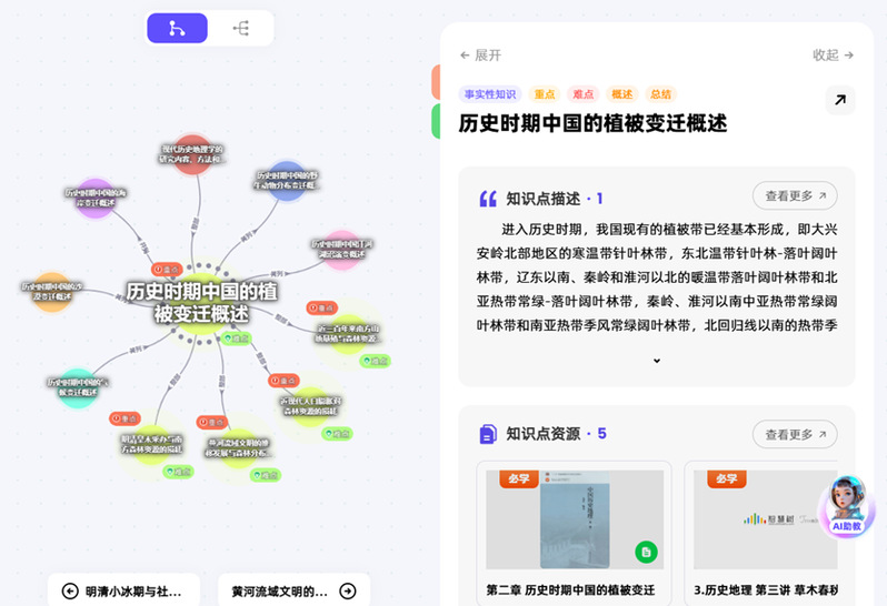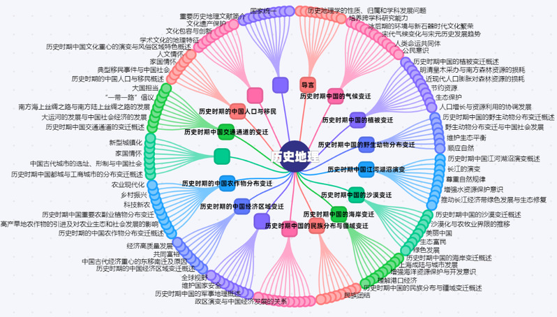 课程负责人温鹏辉副教授介绍,《历史地理》智慧课程利用AI知识图谱对课程内容进行深度梳理与整合,精心提炼出核心知识点,构建起一张清晰、连贯的知识网络。教师能依托图谱精准定位教学难点,设计个性化教学路径;学生能按需探索,高效掌握知识体系。未来,《历史地理》教学团队计划将该课程打造成为示范性教学资源。一方面将持续更新和优化知识图谱内容,紧跟学术前沿;另一方面,将积极推动优质教学资源的开放共享,探索与兄弟高校共建课程联盟,通过师资培训、资源共享等方式,将这一智慧教学成果惠及更广大的师生群体,引领历史地理课程教学模式的智能化转型。